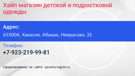 Хайп, магазин детской и подростковой одежды по адресу 655004, Хакасия, Абакан, Некрасова, 31 в дальнейшем Организация, размещена в следующих категориях: