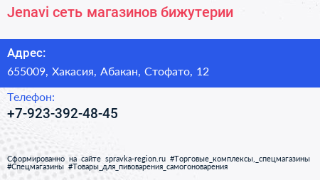 Jenavi, сеть магазинов бижутерии по адресу 655009, Хакасия, Абакан, Стофато, 12 в дальнейшем Организация, размещена в следующих категориях: