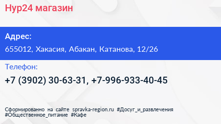 Нур24, магазин по адресу 655012, Хакасия, Абакан, Катанова, 12/26 в дальнейшем Организация, размещена в следующих категориях: