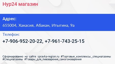 Нур24, магазин по адресу 655004, Хакасия, Абакан, Итыгина, 9а в дальнейшем Организация, размещена в следующих категориях: