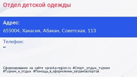 Отдел детской одежды по адресу 655004, Хакасия, Абакан, Советская, 113 в дальнейшем Организация, размещена в следующих категориях: