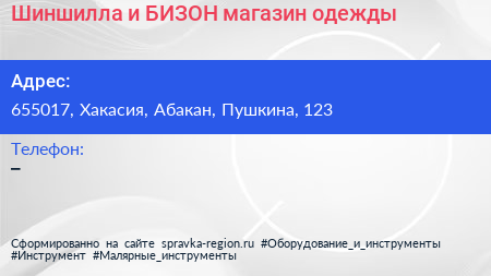Шиншилла и БИЗОН, магазин одежды по адресу 655017, Хакасия, Абакан, Пушкина, 123 в дальнейшем Организация, размещена в следующих категориях: