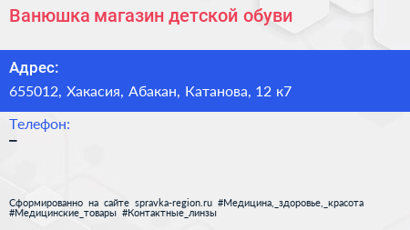 Ванюшка, магазин детской обуви по адресу 655012, Хакасия, Абакан, Катанова, 12 к7 в дальнейшем Организация, размещена в следующих категориях:
