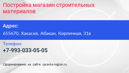Постройка, магазин строительных материалов по адресу 655670, Хакасия, Абакан, Кирпичная, 31в в дальнейшем Организация, размещена в следующих категориях: