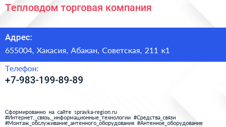 Тепловдом, торговая компания по адресу 655004, Хакасия, Абакан, Советская, 211 к1 в дальнейшем Организация, размещена в следующих категориях: