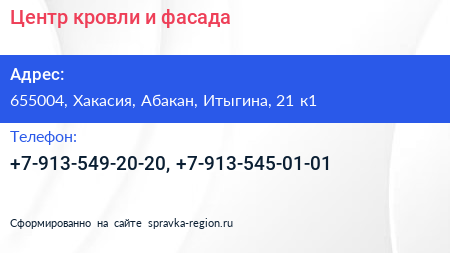 Центр кровли и фасада по адресу 655004, Хакасия, Абакан, Итыгина, 21 к1 в дальнейшем Организация, размещена в следующих категориях: