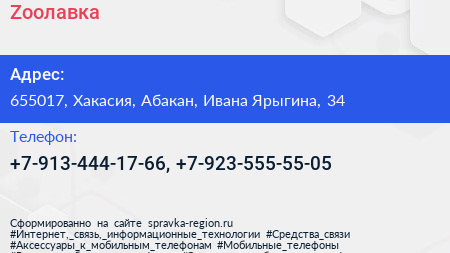 Zooлавка по адресу 655017, Хакасия, Абакан, Ивана Ярыгина, 34 в дальнейшем Организация, размещена в следующих категориях: