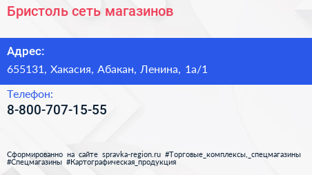 Бристоль, сеть магазинов по адресу 655131, Хакасия, Абакан, Ленина, 1а/1 в дальнейшем Организация, размещена в следующих категориях: