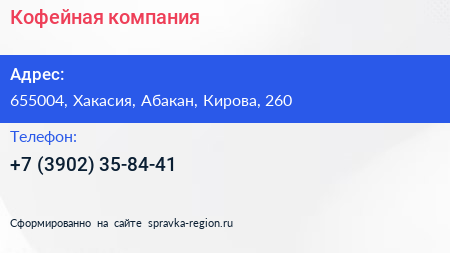 Кофейная компания по адресу 655004, Хакасия, Абакан, Кирова, 260 в дальнейшем Организация, размещена в следующих категориях:
