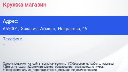 Кружка, магазин по адресу 655001, Хакасия, Абакан, Некрасова, 45 в дальнейшем Организация, размещена в следующих категориях: