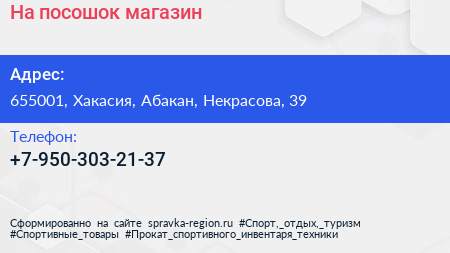 На посошок, магазин по адресу 655001, Хакасия, Абакан, Некрасова, 39 в дальнейшем Организация, размещена в следующих категориях: