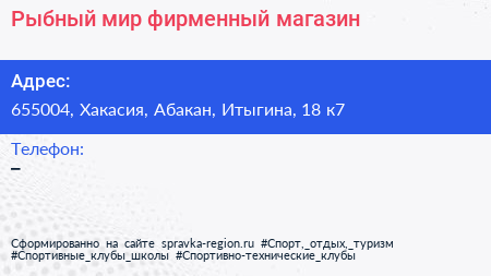 Рыбный мир, фирменный магазин по адресу 655004, Хакасия, Абакан, Итыгина, 18 к7 в дальнейшем Организация, размещена в следующих категориях: