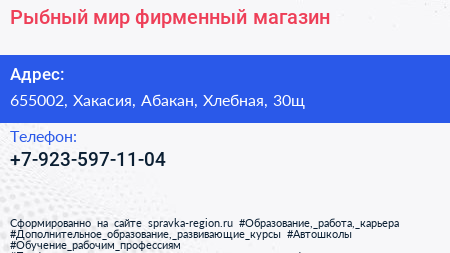 Рыбный мир, фирменный магазин по адресу 655002, Хакасия, Абакан, Хлебная, 30щ в дальнейшем Организация, размещена в следующих категориях:
