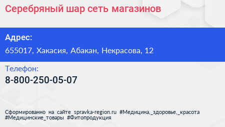 Серебряный шар, сеть магазинов по адресу 655017, Хакасия, Абакан, Некрасова, 12 в дальнейшем Организация, размещена в следующих категориях: