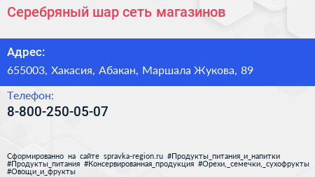 Серебряный шар, сеть магазинов по адресу 655003, Хакасия, Абакан, Маршала Жукова, 89 в дальнейшем Организация, размещена в следующих категориях: