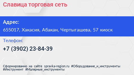Славица, торговая сеть по адресу 655017, Хакасия, Абакан, Чертыгашева, 57 киоск в дальнейшем Организация, размещена в следующих категориях: