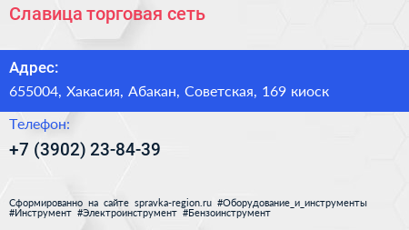 Славица, торговая сеть по адресу 655004, Хакасия, Абакан, Советская, 169 киоск в дальнейшем Организация, размещена в следующих категориях: