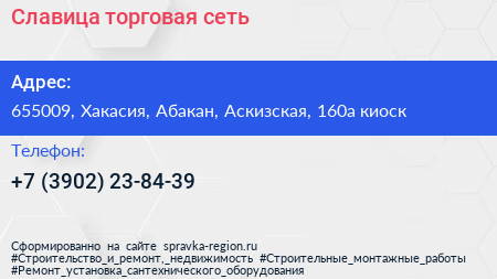 Славица, торговая сеть по адресу 655009, Хакасия, Абакан, Аскизская, 160а киоск в дальнейшем Организация, размещена в следующих категориях: