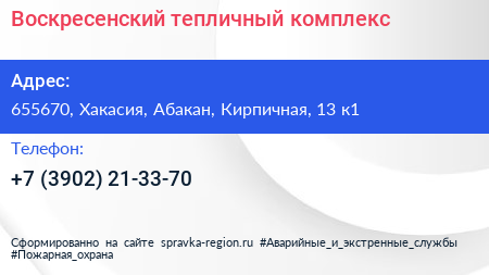 Воскресенский, тепличный комплекс по адресу 655670, Хакасия, Абакан, Кирпичная, 13 к1 в дальнейшем Организация, размещена в следующих категориях: