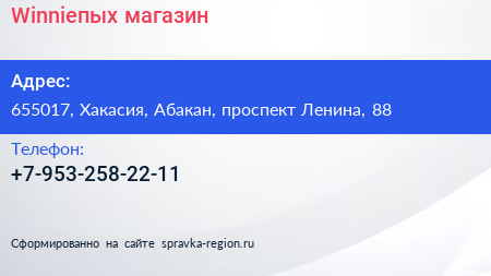 Winnieпых, магазин по адресу 655017, Хакасия, Абакан, проспект Ленина, 88 в дальнейшем Организация, размещена в следующих категориях: