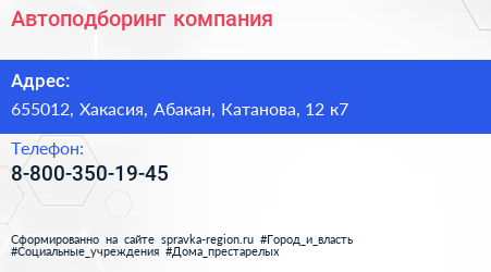 Автоподборинг, компания по адресу 655012, Хакасия, Абакан, Катанова, 12 к7 в дальнейшем Организация, размещена в следующих категориях: