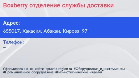 Boxberry, отделение службы доставки по адресу 655017, Хакасия, Абакан, Кирова, 97 в дальнейшем Организация, размещена в следующих категориях: