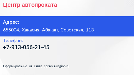 Центр автопроката по адресу 655004, Хакасия, Абакан, Советская, 113 в дальнейшем Организация, размещена в следующих категориях: