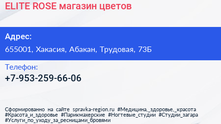 ELITE ROSE, магазин цветов по адресу 655001, Хакасия, Абакан, Трудовая, 73Б в дальнейшем Организация, размещена в следующих категориях: