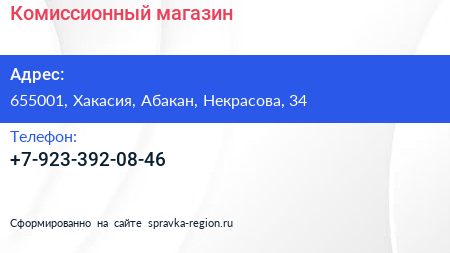 Комиссионный магазин по адресу 655001, Хакасия, Абакан, Некрасова, 34 в дальнейшем Организация, размещена в следующих категориях: