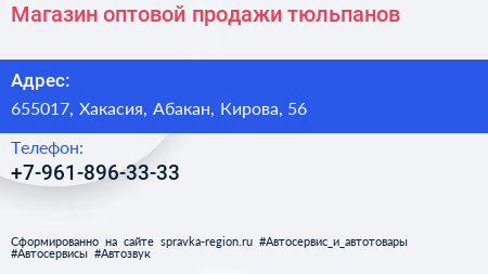 Магазин оптовой продажи тюльпанов по адресу 655017, Хакасия, Абакан, Кирова, 56 в дальнейшем Организация, размещена в следующих категориях: