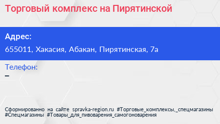 Торговый комплекс на Пирятинской по адресу 655011, Хакасия, Абакан, Пирятинская, 7а в дальнейшем Организация, размещена в следующих категориях: