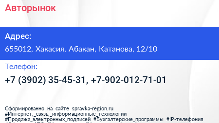 Авторынок по адресу 655012, Хакасия, Абакан, Катанова, 12/10 в дальнейшем Организация, размещена в следующих категориях: