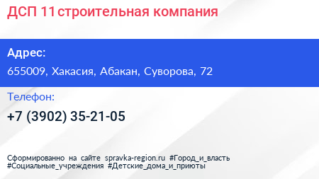 ДСП 11, строительная компания по адресу 655009, Хакасия, Абакан, Суворова, 72 в дальнейшем Организация, размещена в следующих категориях: