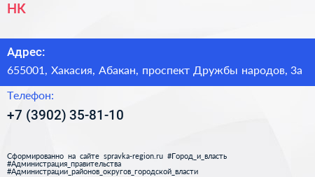 НК по адресу 655001, Хакасия, Абакан, проспект Дружбы народов, 3а в дальнейшем Организация, размещена в следующих категориях: