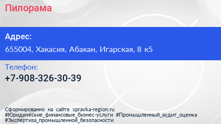 Пилорама по адресу 655004, Хакасия, Абакан, Игарская, 8 к5 в дальнейшем Организация, размещена в следующих категориях: