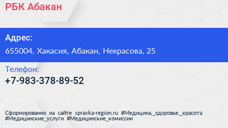 РБК-Абакан по адресу 655004, Хакасия, Абакан, Некрасова, 25 в дальнейшем Организация, размещена в следующих категориях: