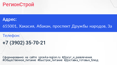 РегионСтрой по адресу 655001, Хакасия, Абакан, проспект Дружбы народов, 3а в дальнейшем Организация, размещена в следующих категориях: