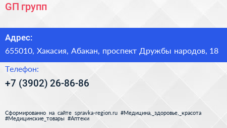 GП групп по адресу 655010, Хакасия, Абакан, проспект Дружбы народов, 18 в дальнейшем Организация, размещена в следующих категориях: