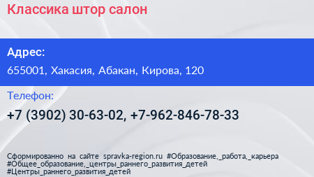Классика штор, салон по адресу 655001, Хакасия, Абакан, Кирова, 120 в дальнейшем Организация, размещена в следующих категориях: