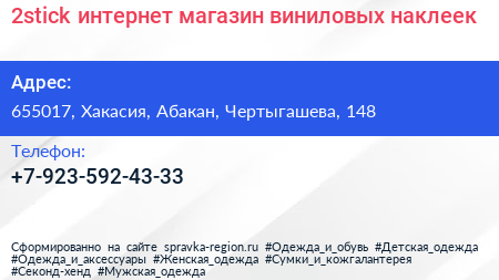 2stick, интернет-магазин виниловых наклеек по адресу 655017, Хакасия, Абакан, Чертыгашева, 148 в дальнейшем Организация, размещена в следующих категориях: