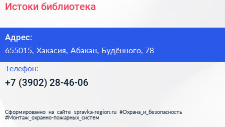 Истоки, библиотека по адресу 655015, Хакасия, Абакан, Будённого, 78 в дальнейшем Организация, размещена в следующих категориях: