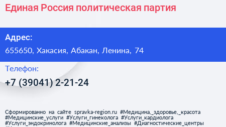 Единая Россия, политическая партия по адресу 655650, Хакасия, Абакан, Ленина, 74 в дальнейшем Организация, размещена в следующих категориях: