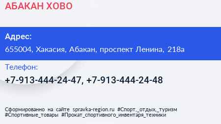 АБАКАН ХОВО по адресу 655004, Хакасия, Абакан, проспект Ленина, 218а в дальнейшем Организация, размещена в следующих категориях: