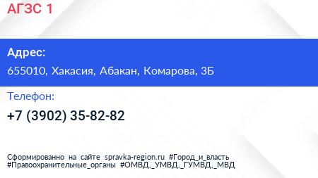 АГЗС-1 по адресу 655010, Хакасия, Абакан, Комарова, 3Б в дальнейшем Организация, размещена в следующих категориях: