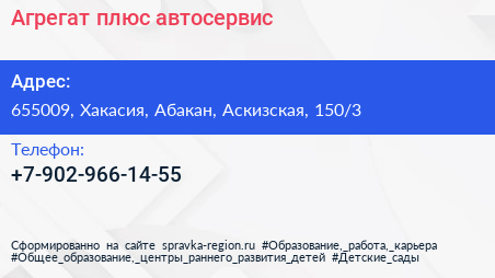 Агрегат плюс, автосервис по адресу 655009, Хакасия, Абакан, Аскизская, 150/3 в дальнейшем Организация, размещена в следующих категориях: