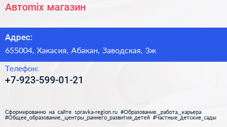 Автоmix, магазин по адресу 655004, Хакасия, Абакан, Заводская, 3ж в дальнейшем Организация, размещена в следующих категориях: