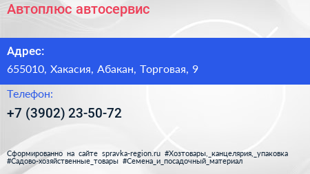 Автоплюс, автосервис по адресу 655010, Хакасия, Абакан, Торговая, 9 в дальнейшем Организация, размещена в следующих категориях: