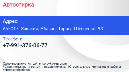 Автостирка по адресу 655017, Хакасия, Абакан, Тараса Шевченко, 93 в дальнейшем Организация, размещена в следующих категориях: