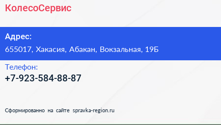 КолесоСервис по адресу 655017, Хакасия, Абакан, Вокзальная, 19Б в дальнейшем Организация, размещена в следующих категориях: