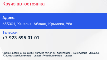 Круиз, автостоянка по адресу 655001, Хакасия, Абакан, Крылова, 98а в дальнейшем Организация, размещена в следующих категориях: